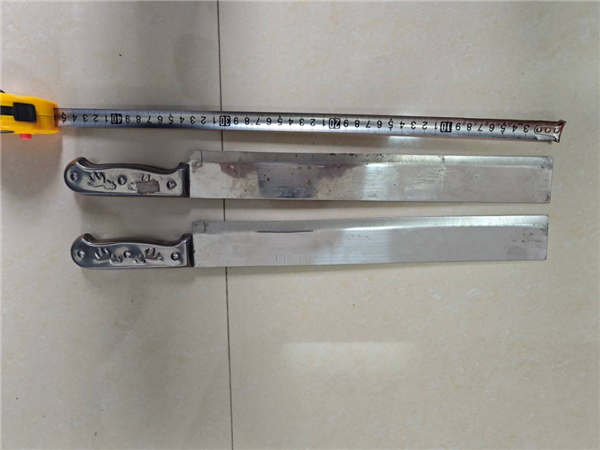 從江縣人。韋某去年在廣東打工時(shí),在地?cái)偵腺?gòu)買(mǎi)了這兩把西瓜刀用來(lái)切水果,并在春節(jié)前把刀放進(jìn)行李箱里乘坐私家車(chē)帶回貴州老家過(guò)年,期間沒(méi)有將行李箱打開(kāi)過(guò)。