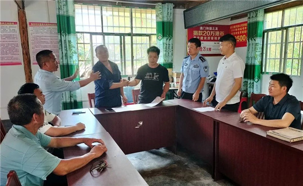 2023年5月4日,加鳩派出所民警得知了此消息。了解到該山林土地屬于歷史界線劃分不清引起的糾紛,雙方各執一詞,互不退讓,矛盾存在進一步擴大激化的可能。為避免矛盾再次升級,加鳩派出所民警隨即主動聯系相關部門,與加鳩鎮人民政府、鎮司法所、鎮林業站工作人員一行,再次進村組織雙方當事人、群眾代表在加水村委會開展矛盾糾紛化解現場會。