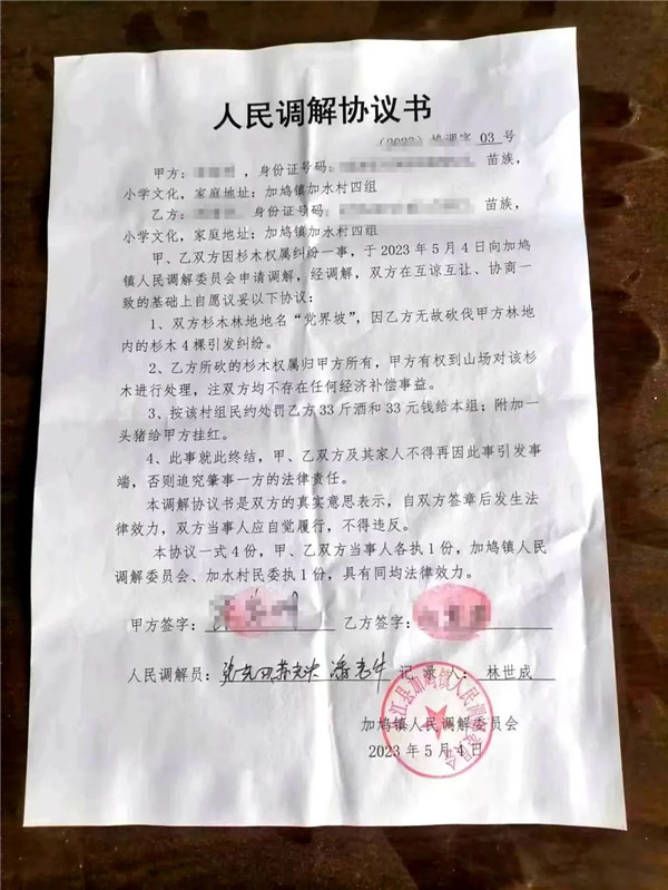 “黨界坡”原系加鳩鎮加水村四組的一片集體山林土地,后村小隊將該地山林劃分到戶。由于當時并沒有對山林地歸屬做出詳細的記錄。隨著時間的推移,山林地上種植了不少杉木,也就是這些杉木引起了這場村民糾紛。