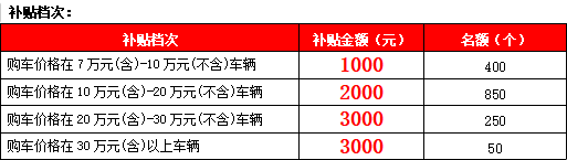 汽車經(jīng)銷企業(yè)新購置7座及以下的非營運(yùn)燃油車、新能源乘用車,購車價(jià)格在7萬元(含)以上,按要求在實(shí)名認(rèn)證的“云上貴州多彩寶”APP上傳真實(shí)完整有效的票據(jù)、證件資料,經(jīng)審核通過后,按購車檔次給予補(bǔ)貼,每輛車僅可申報(bào)一次。補(bǔ)貼以電子消費(fèi)金形式發(fā)放,發(fā)放順序以消費(fèi)者上傳真實(shí)完整清晰有效的票據(jù)、證件材料的先后時(shí)間為準(zhǔn),名額有限,先到先得,用完即止。