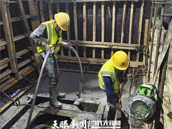 施工過程中,不僅安排專人盯控,按照責任分工和崗位職責分解任務、責任到人,研究制定具體落實舉措、嚴抓落實,跟蹤每個工序施工情況。還要求全程跟班作業(yè)保證現場質量、安全可控,控制工序銜接時間,并優(yōu)化主塔砼配合比,加強原材料管理,從而確保澆筑順利完成。