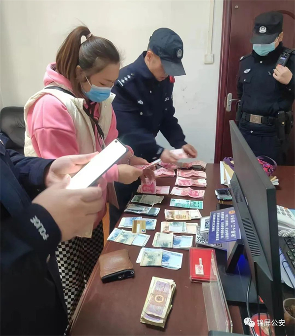 接到肖女士電話后,錦屏縣公安局三江派出所及特巡警大隊出警人員立即趕往現場,一邊安慰肖女士,一邊安排人員立即兵分兩路進行開展工作。一路在醫院內走訪查找,一路調看肖女士沿途監控視頻畫面,經民警一個半小時的努力,于當日12時在錦屏縣三江鎮掛治村找到了撿拾到肖女士錢包的人員,為肖女士尋回了內裝有9000多元用于給母親看病的錢及母親的身份證、醫保卡等物品的錢包。