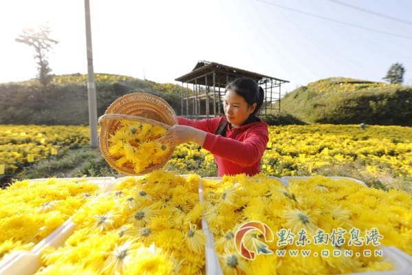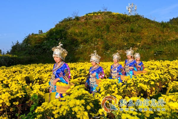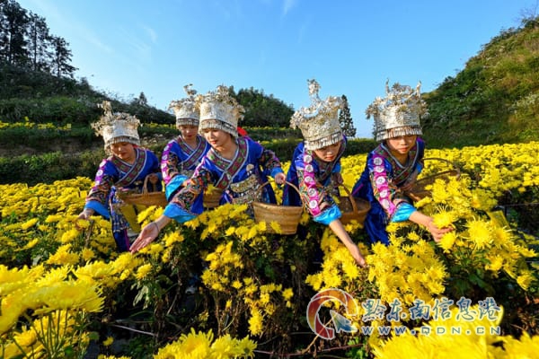 錦屏縣平略鎮平敖村金絲皇菊基地,一幅生機勃勃的田園畫卷映入眼簾。遍地的金絲皇菊在陽光下競相綻放,散發出淡雅的清香,吸引著游客駐足觀賞。十多位村民正忙碌地采摘金絲皇菊,臉上洋溢著自豪和喜悅,金絲皇菊已經成為他們增收致富的新希望。