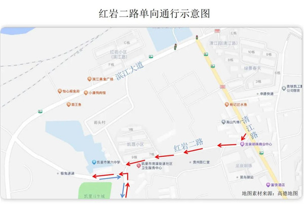 為進(jìn)一步改善紅巖二路通行環(huán)境,最大限度減少紅巖二路交通擁堵,經(jīng)“暢通凱里”聯(lián)席會議研究,結(jié)合灣溪街道辦事處前期對紅巖二路實施單向行駛的民意調(diào)查情況,根據(jù)《中華人民共和國道路交通安全法》《中華人民共和國道路交通安全法實施條例》等法律、法規(guī)規(guī)定,現(xiàn)決定對紅巖二路實施單向通行,現(xiàn)將相關(guān)事項通告如下: