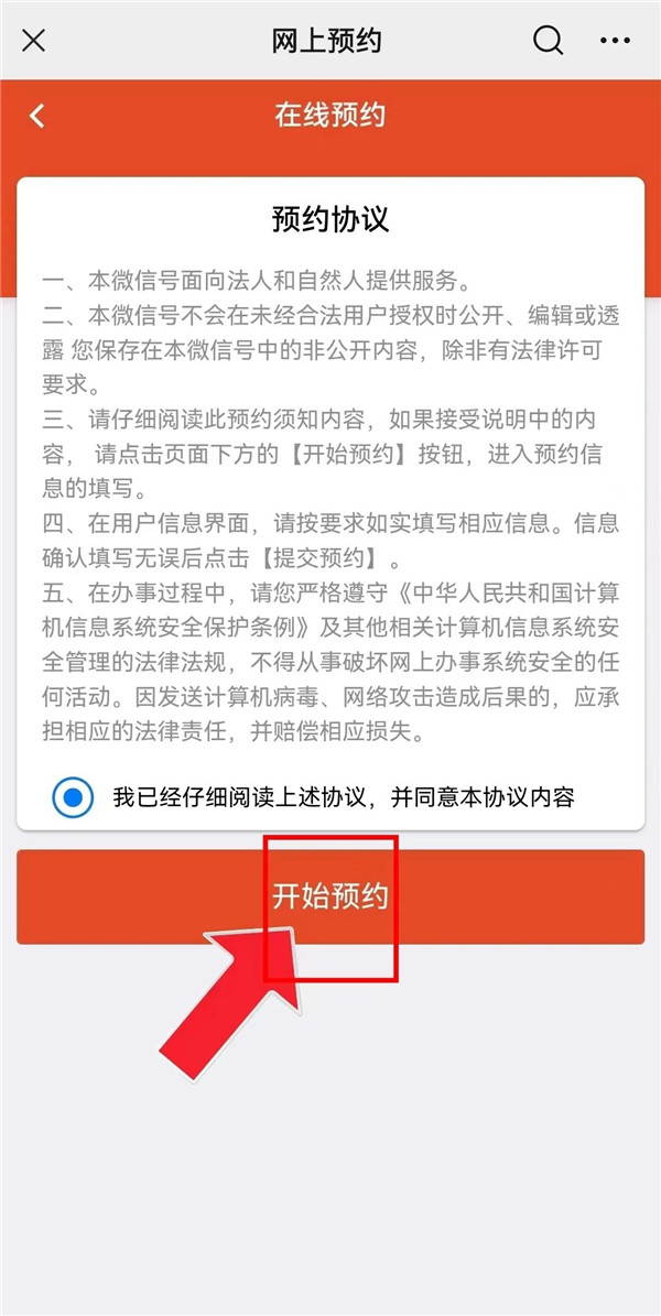 ⑦選擇完畢后,點擊“開始預約”。