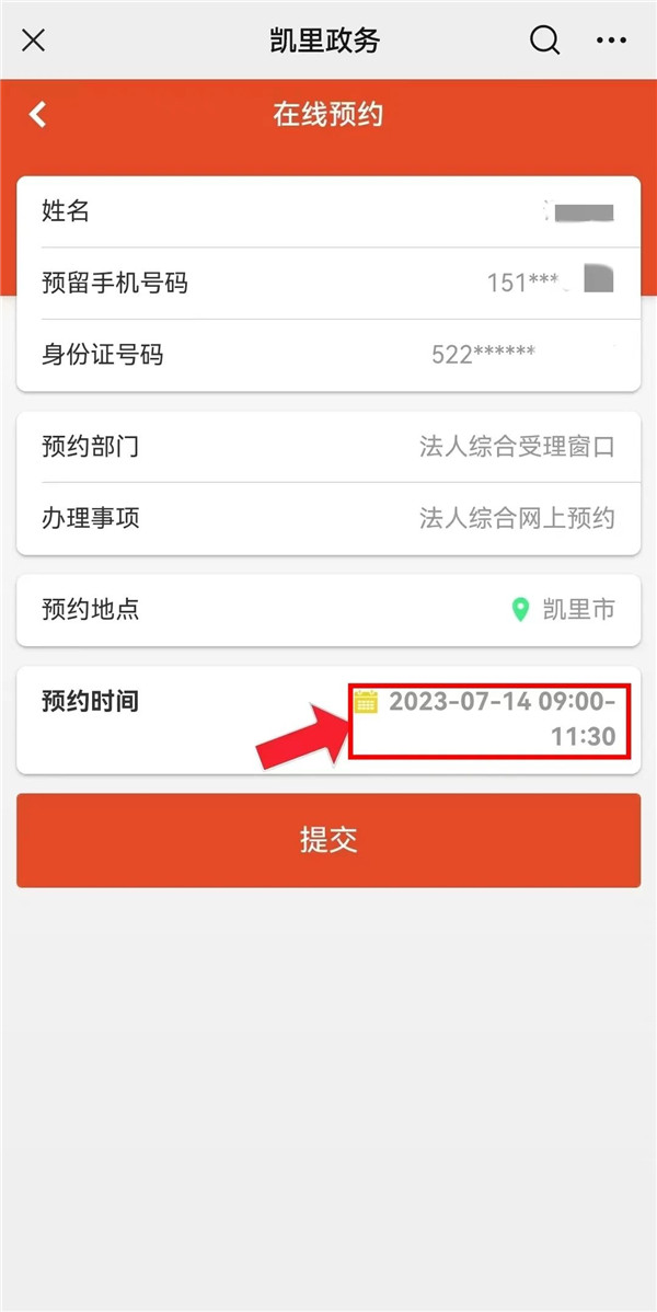 ⑧選擇“預約時間”,點擊“提交”,完成預約。