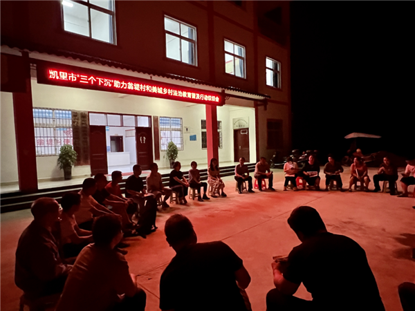 (政法干警、法學(xué)會(huì)會(huì)員和律師聯(lián)合村兩委組織召開法治教育普及壩壩會(huì))