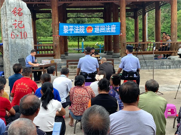 黎平縣人民法院刑事審判庭在九潮鎮(zhèn)民羅新村公開巡回審理一起幫助信息網(wǎng)絡(luò)犯罪活動(dòng)罪案件,現(xiàn)場旁聽群眾340人,并在抖音平臺上全程直播庭審,觀看達(dá)96萬人次。