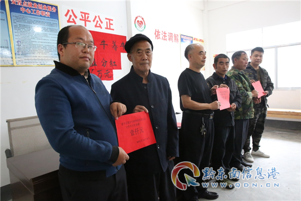 本網訊 10月6日,在永從鎮傳洞村永興寨的會議室里,貴州省人大代表、孺子牛專業合作社理事長吳國邦、村黨支部書記陸信昌、駐村第一書記吳宇佳正向傳洞村的3、4、5、6組的精準脫貧戶群眾代表發放養牛產業分紅資金6萬元,會場里所有人都喜氣洋洋,脫貧戶臉上流露出的幸福感和滿足感是脫貧攻堅路上最美的風景。