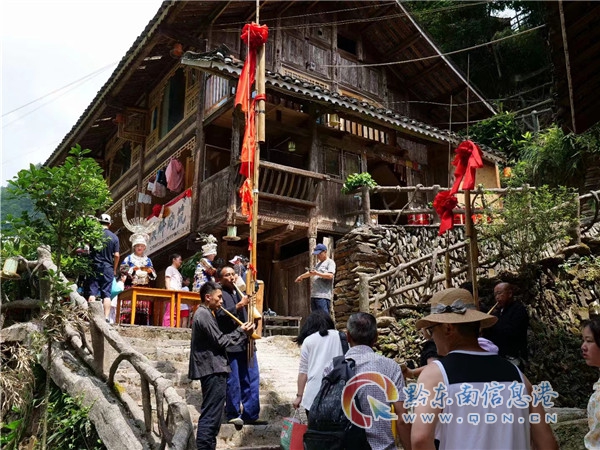 雷山縣方祥鄉格頭村禿杉王下的一家農家樂庭院的場景。