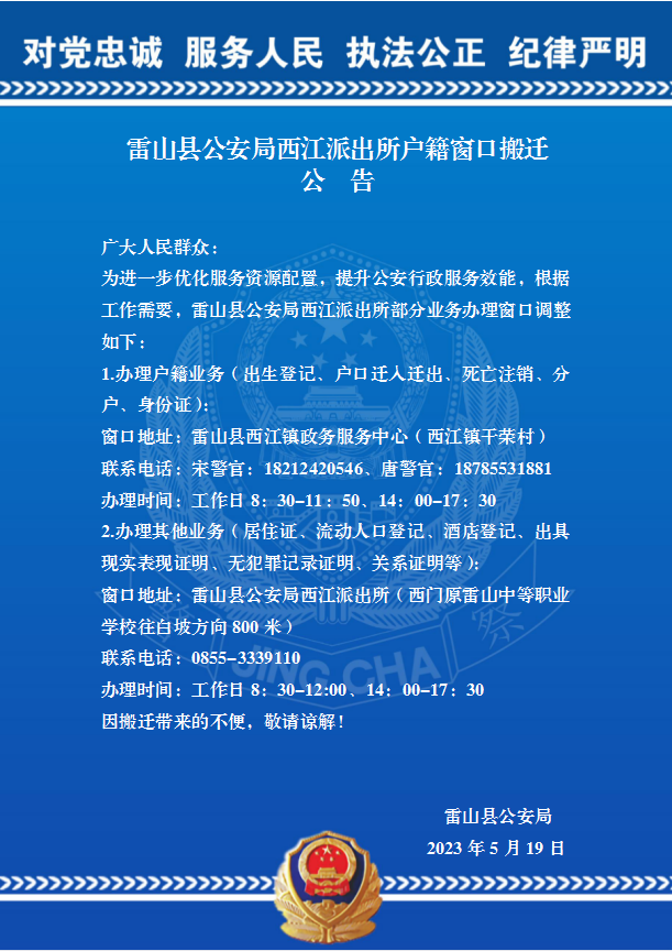 @雷山人注意!雷山縣公安局西江派出所戶籍窗口搬遷了