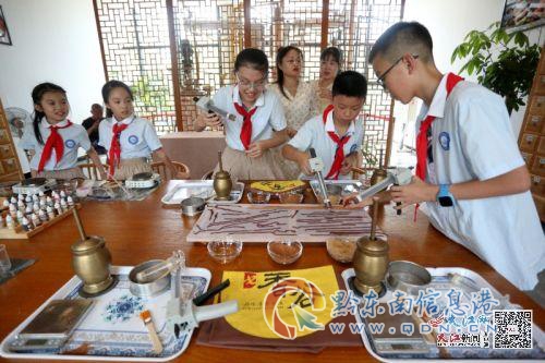 學生在香谷小鎮香料香精微生產工坊體驗線香制作