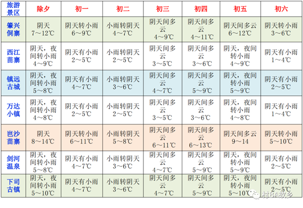 黔東南主要旅游景區(qū)春節(jié)期間天氣預(yù)報(bào)