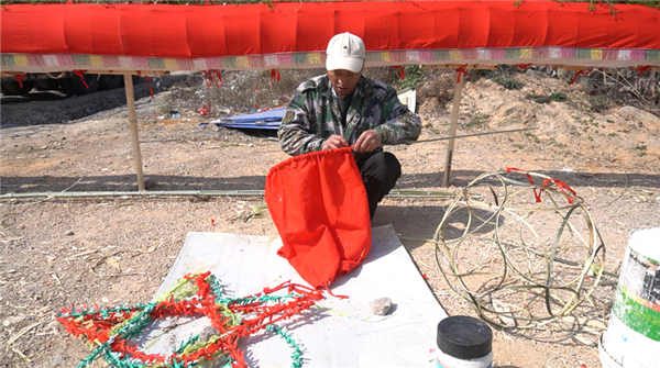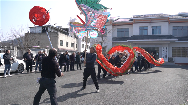 走進新州鎮十里橋村,民間藝人們在加緊扎制、排練龍燈,十余名村民有的圍在一起練習,敲著鑼,打著鼓,有的在制作“龍珠”,有的在制作龍燈用的蠟燭,為“初九出龍”儀式做好前期準備。