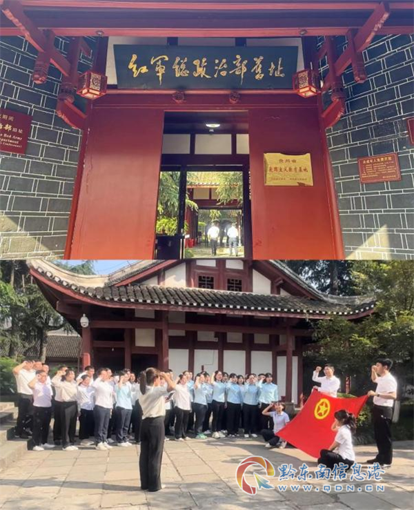 見學第二站來到紅軍總政治部舊址,紅軍總政治部舊址位于遵義老城楊柳街28號,與遵義會議會址毗鄰。在舊址,團青們面向團旗用莊嚴嘹亮的聲音重溫入團誓言:“我志愿加入中國共產主義青年團,堅決擁護中國共產黨的領導,遵守團的章程,執行團的決議,履行團員義務,嚴守團的紀律,勤奮學習,積極工作,吃苦在前,享受在后,為共產主義事業而奮斗。”