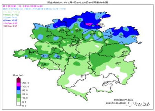 圖1:5日8時至6日8時黔東南州降雨分布圖