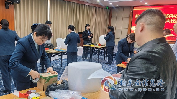 實踐練兵,鞏固技能。州分公司還舉辦了郵件收寄包裝規(guī)范技能大比武,利用以賽促練的實戰(zhàn)練兵方式,開展了知識競答以及專業(yè)實操的比拼。現(xiàn)場考核員工對禁限寄物品和不同材質(zhì)物品的包裝能力。同時通過競賽員工對包裝收寄、包裝規(guī)定認(rèn)識更準(zhǔn)確,也激發(fā)員工學(xué)業(yè)務(wù)、練本領(lǐng)的熱情,提升了收寄包裝效率。