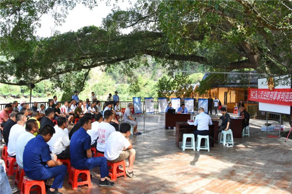 近日,榕江縣人民檢察院聯合縣法院到寨蒿鎮平堡村以巡回庭審的方式公開審理安某才掩飾、隱瞞犯罪所得罪一案,現場有近100名群眾旁聽案件審理。