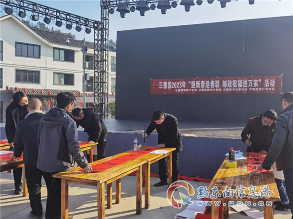 三穗縣郵政分公司“迎新春送春聯(lián)、郵政祝福進萬家”活動將舉行三場活動,第一、二場時間為1月12日,地點在三穗縣文筆街道仁和社區(qū)和桐林郵政支局;第二場時間將于1月16日在林園路郵政支局開展。(楊光學(xué)、肖永英、唐凝韜)