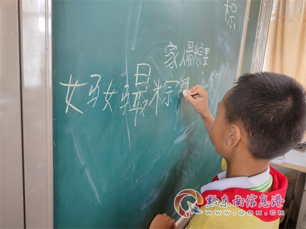教室里的黑板上,同學們寫下關于“粽”的美好詞句,提前過了端午節。
