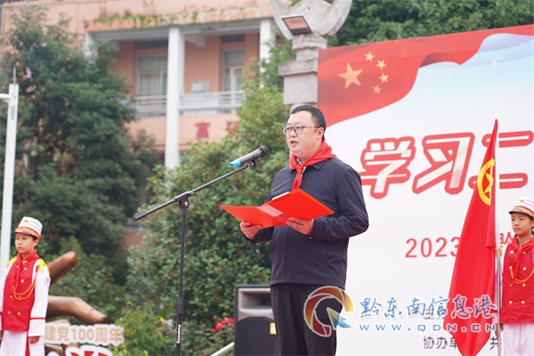 臺江縣總輔導員唐杰魁老師帶領少先隊員們鏗鏘有力地呼號。