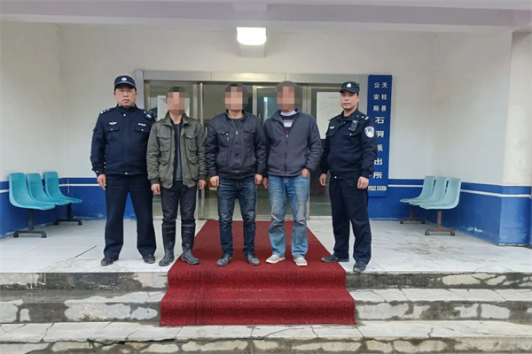 2月9日,派出所民警在走訪轄區(qū)時(shí)一群眾向派出所反映,幾名外地男子用車子拉著獵犬,出現(xiàn)在轄區(qū),可能從事違法活動(dòng)。接到群眾反映,石洞派出所民警立即前往排查。當(dāng)日17時(shí)許,民警在石洞鎮(zhèn)沖敏村孟碑(地名)公路邊將3名可疑男子查獲,現(xiàn)場(chǎng)繳獲火藥槍3支。