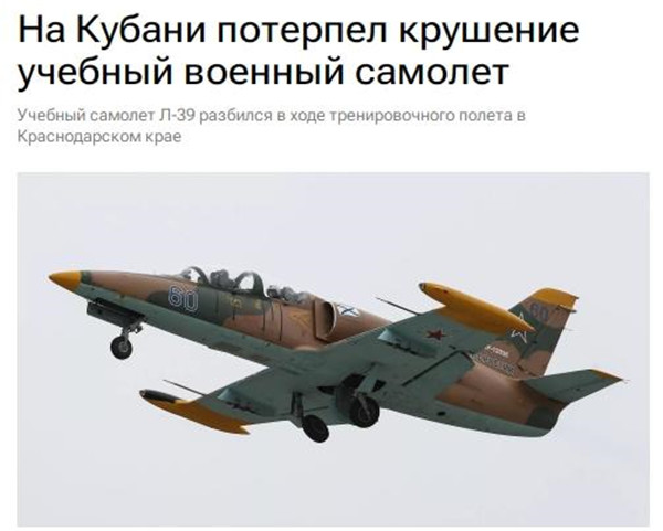 據報道,當天,俄羅斯國防部發布消息稱,“2023年8月14日,航空訓練團一架L-39教練機在克拉斯諾達爾地區執行訓練任務期間,在進場著陸時發生墜毀事故。飛機在機場內墜毀,沒有造成地面財產損壞和人員傷亡。”