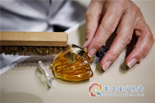 圖:法國(guó)嬌蘭女工藝師為“一千零一夜”香水瓶梳制個(gè)性化流蘇結(jié)