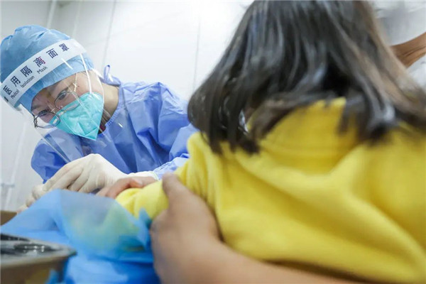 5月9日22時(shí)許,北京協(xié)和醫(yī)院急診科發(fā)熱門診護(hù)士姜迪為一個(gè)兒童采指血。新華社記者張玉薇攝