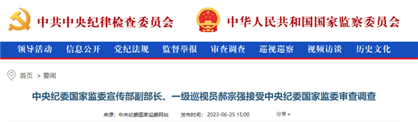 據(jù)中央紀(jì)委國家監(jiān)委網(wǎng)站25日消息,中央紀(jì)委國家監(jiān)委宣傳部副部長、一級巡視員郝宗強(qiáng)涉嫌嚴(yán)重違紀(jì)違法,目前正在接受中央紀(jì)委國家監(jiān)委審查調(diào)查。