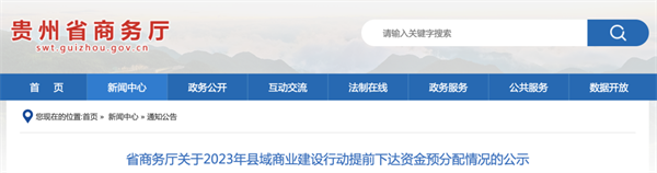 1月3日,貴州省商務廳發布關于2023年縣域商業建設行動提前下達資金預分配情況的公示,具體如下——