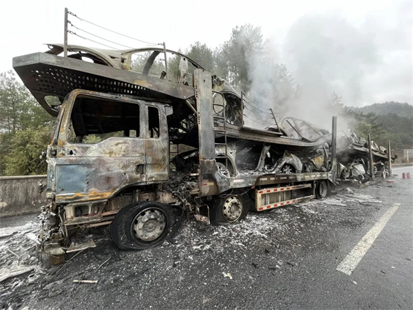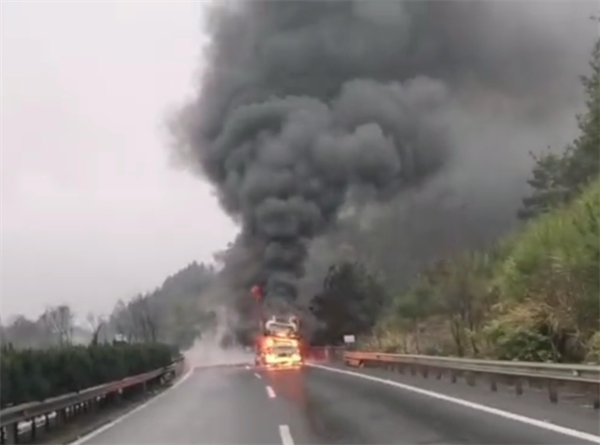 后經詢問駕駛員得知:貨車上運載的是十輛即將銷售的特斯拉新車。行經此處時,突然從后視鏡中看到車輛的后輪起火,立即將車停在路邊后,下車持滅火器自行展開撲救。但因火勢過大,無法撲滅,所幸路政部門通過視頻巡察,及時發現了此次火情并撥打了119報警電話。