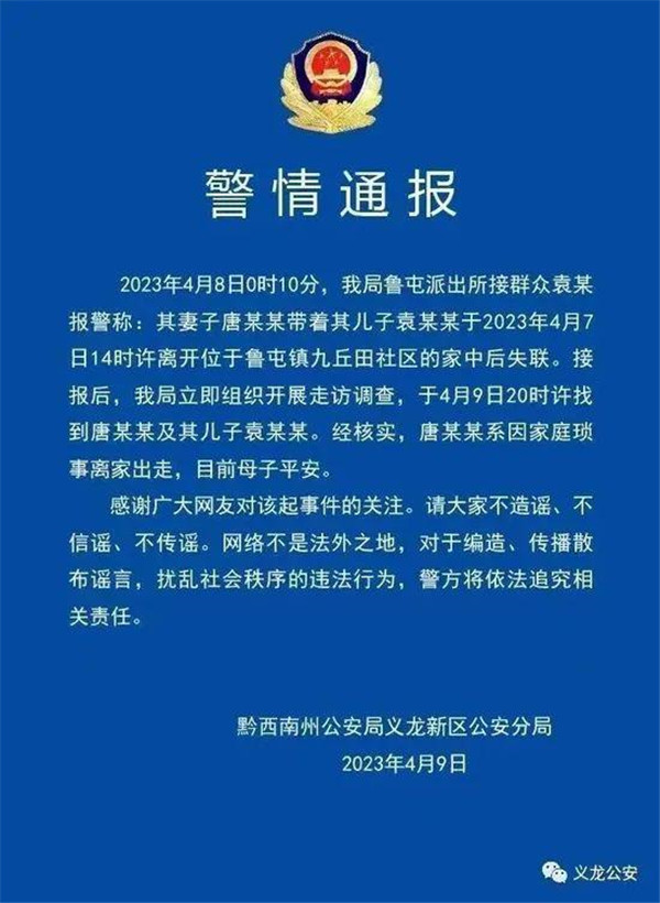 網傳母子小區內蹊蹺失蹤,貴州一地警方深夜通報