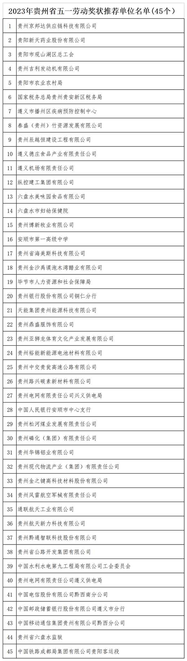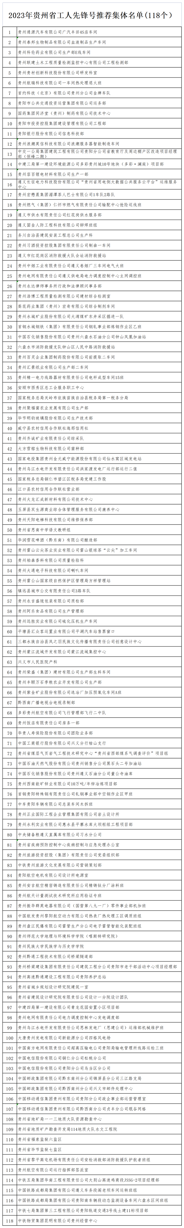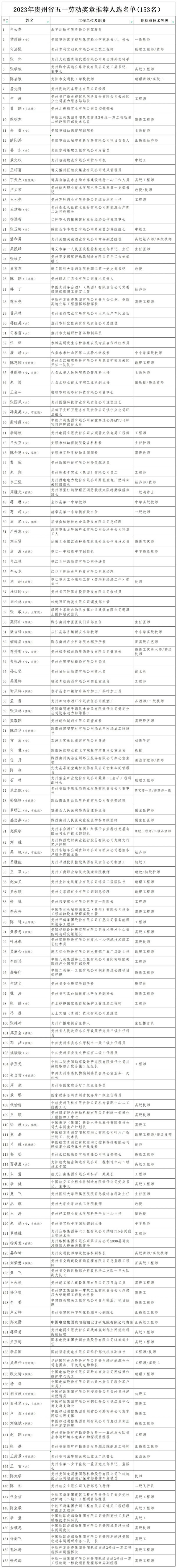 2023年貴州省五一勞動獎和工人先鋒號推薦對象公示