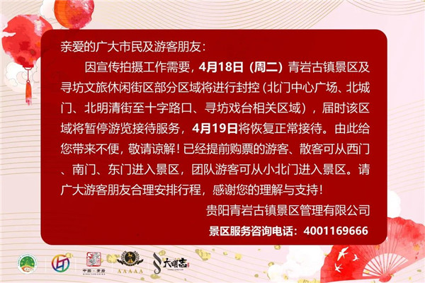 @所有人,4月18日,貴州這兩景區將臨時閉園或封控