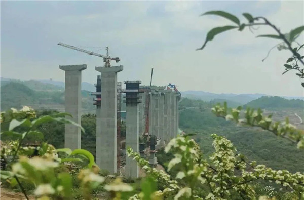 位于T10合同段內的六枝特大橋是納晴高速公路控制性工程之一,目前正在熱火朝天地進行主橋上構節段施工,預計2023年12月份上構節段合龍。該橋全長2012米,墩高196米,單跨跨徑320米,建成后將成為同類型橋梁中墩高世界第一、主跨跨徑世界第一、橋長世界第一的空腹式連續剛構橋。其中,主橋采用的五跨連續預應力混凝土空腹式連續剛構梁結構形式,為目前國內外首次。