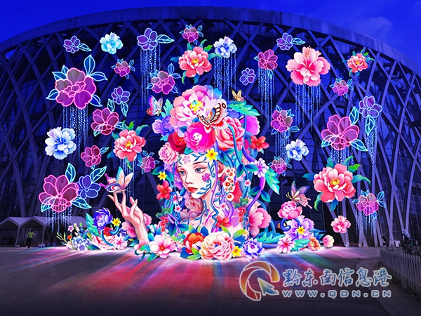 來(lái)自自貢的燈組團(tuán)隊(duì)將傳統(tǒng)文化與科技完美結(jié)合,打造出一盞18米高的花神主燈,百余朵鮮花點(diǎn)綴其間,勾勒出花神的絕美風(fēng)采,歷史文化與科技文明交相輝映,詮釋了對(duì)這座城市和市民游客的美好祝愿。