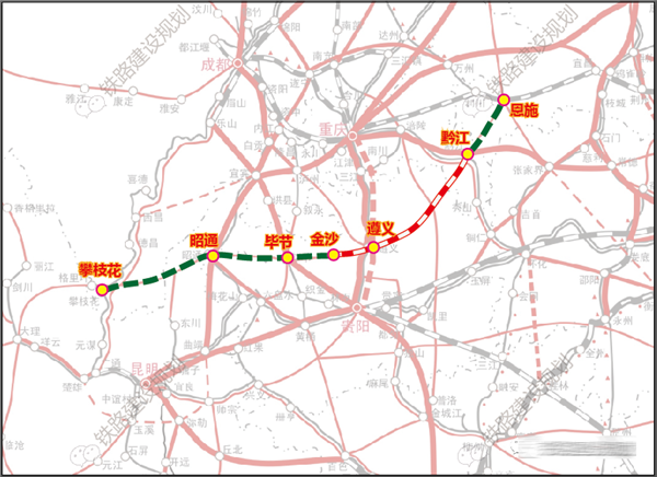 金沙至黔江鐵路是昭通至黔江鐵路的重要組成部分,貴州段規(guī)劃里程約300公里。