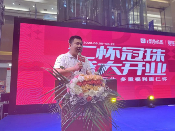 居然之家仁懷分公司總經(jīng)理張華在開業(yè)慶典中作開場致辭,向到場的嘉賓表示誠摯的問候和熱烈的歡迎!他表示,經(jīng)濟高速發(fā)展,城市建設(shè)日新月異,建材裝飾行業(yè)也迎來了新發(fā)展。這其中也離不開本地眾多優(yōu)秀的建材企業(yè)——冠珠瓷磚就是其中的優(yōu)秀代表之一。仁懷冠珠瓷磚旗艦店,產(chǎn)品品質(zhì)高、文化寓意美好,團隊服務(wù)專業(yè),非常值得建材行業(yè)學(xué)習(xí)。相信仁懷冠珠瓷磚將會是越來越多家庭的裝修選擇。