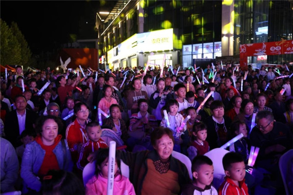 月光如水,映照著五彩斑斕的舞臺。近日,遵義圣城華府紫郡廣場上人山人海,千余名“金粉”揮舞著手中的熒光棒,與大屏幕中遠隔百里的鄰居隔空歡呼。直徑5m的巨型月亮隨風(fēng)起舞,整個現(xiàn)場充滿了濃厚的節(jié)日氛圍。