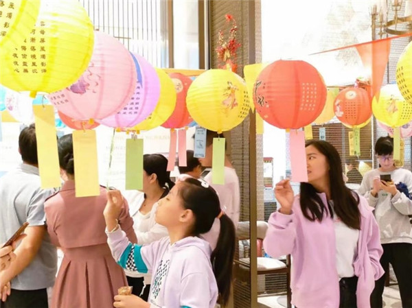 月圓人團圓,在中秋鄰里藝術(shù)節(jié)外,美好的祝福還傳遞到了金科大社區(qū)的每一個角落。各小區(qū)精心布置節(jié)日裝飾,圓圓的燈籠如同豐收的果實掛在上空,道路兩側(cè)擺放著精美的花燈,業(yè)主們沿路走來,還能看到輕輕搖曳的燈謎彩條。古色古香的環(huán)境中,業(yè)主們參與了一場趣味十足的中秋游園會。