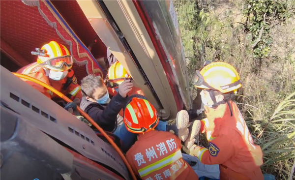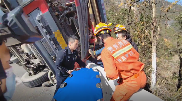 鎮(zhèn)遠(yuǎn)一貨車在陡坡轉(zhuǎn)彎處側(cè)翻,駕駛員被困