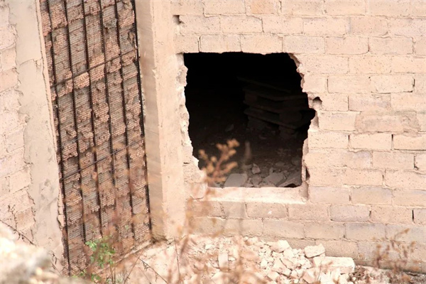 倉(cāng)庫(kù)后面磚墻上的盜洞