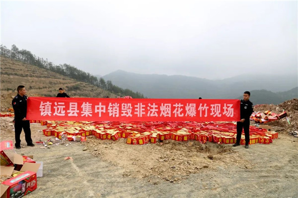 4月12日,鎮遠縣公安局、鎮遠縣應急管理局聯合在轄區涌溪鄉芽溪行政村廢土填埋場,使用“燃燒法”對春節期間依法收繳的1000余件非法煙花爆竹進行集中銷毀,徹底消除安全隱患。