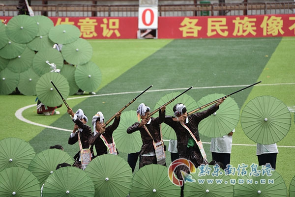 在展演過程中,岜沙苗寨的孩子們身著傳統服飾,手持火槍,以一曲《岜沙漢》生動展現了苗族同胞的勞動場景和獨特風情。小黃侗族大歌則以其宛轉悠揚的歌聲和熱情奔放的舞姿,將現場氣氛推向了高潮。