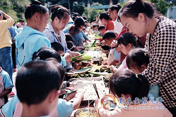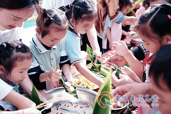 活動中,老師們首先給孩子們講解端午節的由來,并細心地演示如何包粽子,隨后,孩子們在老師與家長的帶領下,興致勃勃地動手學包粽子,將粽葉挽成漏斗狀,填上糯米、餡料、扎繩,再封口捆扎……不一會兒,一個個形態各異的粽子出現在大家眼前。“希望能通過寓教于樂的方式,讓孩子們在動手中感受到端午傳統文化的魅力,從小培養對傳統民俗的興趣。”加榜鄉中心幼兒園園長覃侶說道。