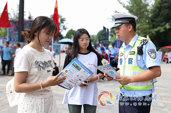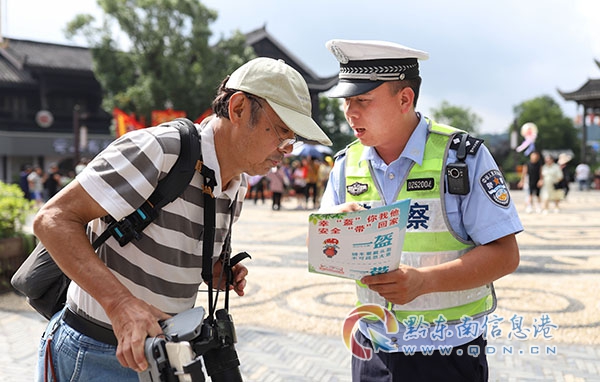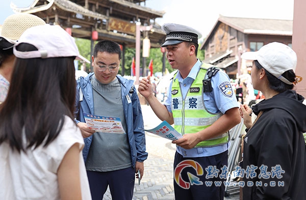 本網(wǎng)訊 7月22日,貴州省丹寨縣交警大隊組織宣傳民警走進轄區(qū)萬達小鎮(zhèn),向旅游度假的游客群眾開展交通安全宣傳,通過發(fā)放宣傳彩頁及“面對面”拉家常等方式向游客們講解超員超速、疲勞駕駛、酒后駕駛、分心駕駛、強超強會等交通違法行為的危害,提醒游客們騎乘摩托車要佩戴好安全頭盔、駕乘車輛要系好安全帶,要時刻做好自身安全防護,牢固樹立交通安全意識,全力為廣大游客營造了良好的道路交通安全氛圍。