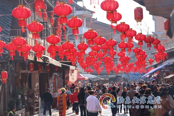 2月15日,下司古鎮千燈綻放,光影飛舞,華彩如詩,景區內人頭攢動,熱鬧非凡。有的游客換上喜歡的民族服裝,穿梭于古老的街道,感受著古鎮的古樸氣息,品味著當地的特色美食。街邊的小吃攤前擠滿了品嘗美食的游客,他們一邊享受著美味,一邊欣賞著古鎮的風景。古鎮內的各種傳統手工藝品也備受游客青睞,有的游客在挑選著心儀紀念品,為旅行增添一份特別的回憶。