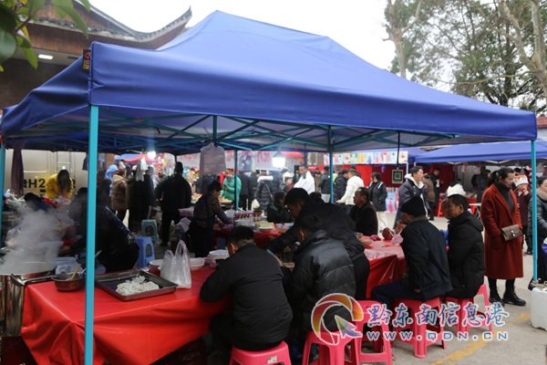 蘆笙堂外,公路兩旁攤位排起了“長龍”,各式米粉、燒烤,甜品零食等美食應有盡有,生意非常火爆。