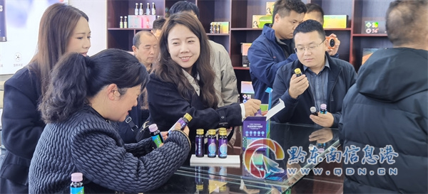 參觀結(jié)束后,一行人來到產(chǎn)品展示廳,現(xiàn)場品鑒了琳瑯滿目的藍莓深加工產(chǎn)品,涵蓋了藍莓保健品、功能性食品、特色飲品等多個品類。游健勇對每一款產(chǎn)品的特色、功效及市場定位進行了深入解讀,讓嘉賓們深刻感受到藍莓產(chǎn)業(yè)在藥食同源領(lǐng)域的廣闊前景。